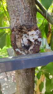 האם גם לכם יצא להיתקל באבקה לבנה היוצאת מגזע עץ האבוקדו?