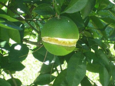 במקרים בהם הצמח נתון לעודף מים כמו בתקופות גשומות או במצבים של השקיה עודפת, הפרי גדל ויוצר לחץ הידרוסטטי חזק (לחץ טורגור) על הדפנות, כך שבשלב מסוים קליפת הפרי נסדקת ומתבקעת.